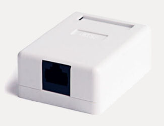 Roseta de terminación de red de dispersión formada por conector hembra tipo RJ-45 de 8 contactos, categoría 6 y caja de superficie, de 47x64,5x25,2 mm, color blanco. | ||