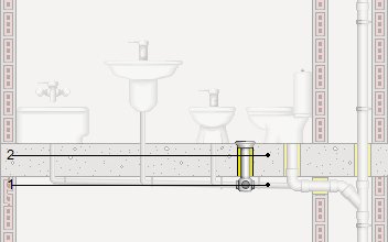 Céspol de bote de PVC, de 110 mm de diámetro, con cinco entradas de 40 mm de diámetro y una salida de 50 mm de diámetro, con tapa ciega de acero inoxidable, colocado superficialmente bajo la losa. Incluso prolongador, líquido limpiador y adhesivo para tubos y accesorios de PVC.