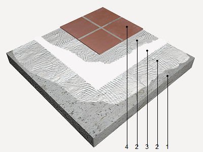 Desolidarización bajo pavimento cerámico o de piedra natural, con láminas nodulares de polietileno