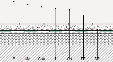 Impermeabilización de galerías y balcones, con geotextil no tejido compuesto por fibras de poliéster unidas por agujeteado, con una resistencia a la tracción longitudinal de 3,45 kN/m, una resistencia a la tracción transversal de 3,45 kN/m, una apertura de cono a la prueba de perforación dinámica según ISO 13433 inferior a 15 mm, resistencia CBR a punzonamiento 0,8 kN y una masa superficial de 300 g/m², sobre mortero de cemento CEM II/B-P 32,5 N tipo M-5, confeccionado en obra con 250 kg/m³ de cemento y una proporción en volumen 1/6, con espesor medio de 4 cm y pendiente del 1% al 5%, acabado flotado, membrana impermeabilizante flexible de PVC-P, (fv), de 1,2 mm de espesor, con armado de velo de fibra de vidrio, y con resistencia a la intemperie, colocada suelta sobre la capa separadora, fijada en solapes mediante soldadura termoplástica, y en los bordes soldada a perfiles colaminados de lámina metálica y PVC-P y protegida con capa separadora de geotextil no tejido compuesto por fibras de poliéster unidas por agujeteado, con una resistencia a la tracción longitudinal de 3,45 kN/m, una resistencia a la tracción transversal de 3,45 kN/m, una apertura de cono a la prueba de perforación dinámica según ISO 13433 inferior a 15 mm, resistencia CBR a punzonamiento 0,8 kN y una masa superficial de 300 g/m². | ||