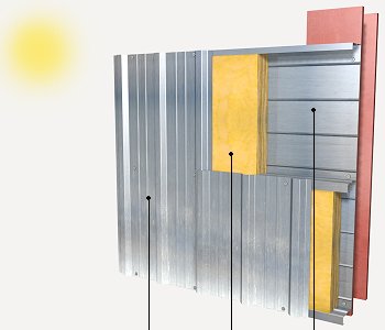 | Fachada doble, de lámina perfilada de acero con aislamiento intermedio | ||