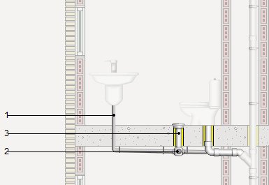 Red interior de evacuación, para medio baño con dotación para: sanitario, lavabo sencillo, realizada con tubo de PVC, serie B para la red de desagües. | ||